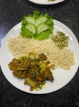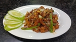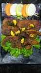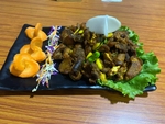 Grilled Duck Meat Marinated in Spicy Blend of Mustard Oil, Garlic and Spices. Served with Chiura and Green Salad.
