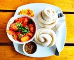 Pork Khutti gravy, Rice, Tingmo & Aalu dam